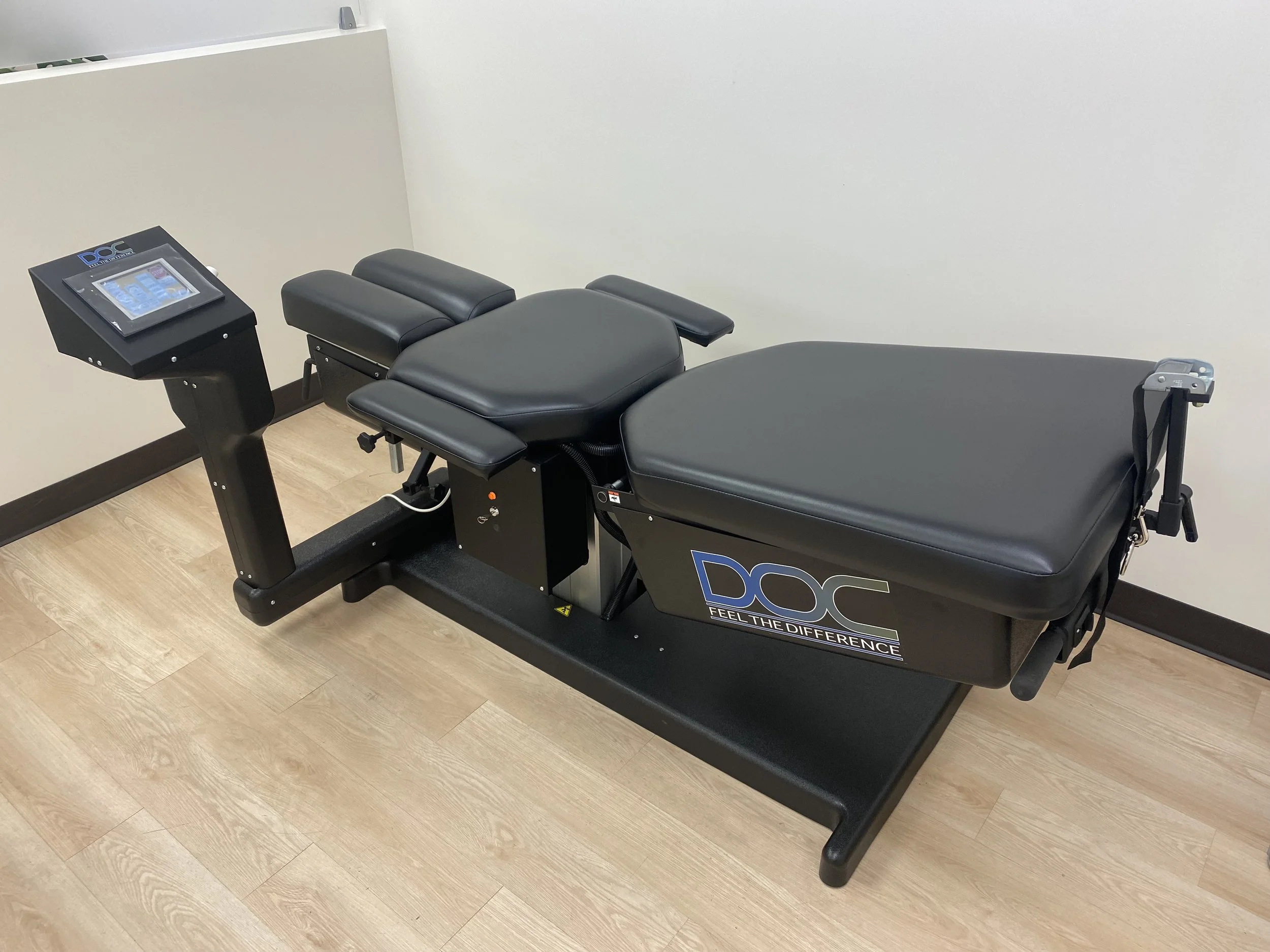 Non-Surgical Spinal Decompression therapy gently stretches the spine to take pressure off the affected discs and nerves. This creates negative pressure within the disc area to produce new tissues and cells, thus internally repairing the damaged discs and tissues. Spinal decompression therapy improves the discs’ ability to act as a cushion for the spinal bones and helps bulging discs to return to their original shape.
